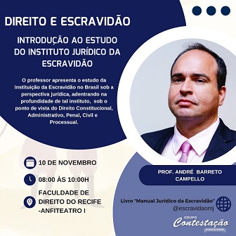 Direito e Escravidão são tema de palestra na Faculdade de Direito do Recife
