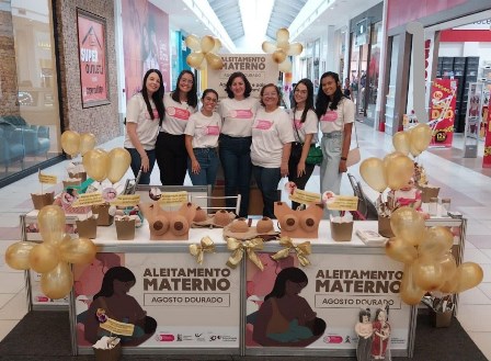 Docentes e estudantes da pós-graduação e graduação em Enfermagem da UFPE promoveram ações educativas em prol do aleitamento materno, nos últimos dias 19 e 20, no Shopping Guararapes, em Jaboatão dos Guararapes, no Grande Recife. A ação de extensão foi realizada pelos Grupos de Pesquisa em Saúde da Mulher e da Criança do Programa de Pós-Graduação em Enfermagem da Universidade, em comemoração ao Agosto Dourado.