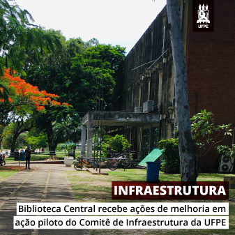 A realização de ações de melhoria na infraestrutura dos prédios da Universidade Federal de Pernambuco (UFPE) é o objetivo principal do Comitê de Infraestrutura, coordenado pela gestão central da instituição, com acompanhamento direto do Gabinete do Reitor. A primeira atividade do grupo já está em curso, em formato piloto, na Biblioteca Central (BC), no Campus Recife, onde estão sendo feitos, deste ontem (16), trabalhos de limpeza da fachada e do telhado, verificação de pontos de infiltração, reorganização da rede de acesso à internet, manutenção e instalação de aparelhos de ar-condicionado, entre outros.